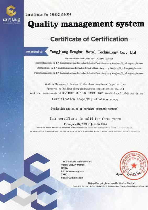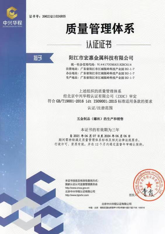 廣東宏惠金屬公司是家20多年一直專注鉆尾螺絲開發(fā)與生產(chǎn)的企業(yè),是國內(nèi)較早做鉆尾的廠家之一,同時也是國內(nèi)專業(yè)開發(fā)生產(chǎn)鉆尾螺絲的企業(yè)之一。 我司地址為于廣東省陽江市江銀嶺科技園距沈海高速白沙出口不到2公里,距陽江高鐵站也只有十余公里交通便利。 公司占地120畝,擁有超500臺套專業(yè)設(shè)計 生產(chǎn) 檢測設(shè)備。一個超200人的專業(yè)團隊,能夠嚴(yán)格按照ISO9001質(zhì)量體系要求生產(chǎn)符合GB DIN AS3566 ANSI JIS BS等標(biāo)準(zhǔn)的產(chǎn)品,生產(chǎn)銷售各種高品質(zhì)緊固件系列產(chǎn)品,為中高端客戶提供優(yōu)質(zhì)服務(wù)。也可按照客戶要求設(shè)計生產(chǎn)各種鉆尾,年產(chǎn)高品質(zhì)碳鋼 不銹鋼鉆尾螺絲2萬余噸.在各大客戶的鼎力支持下產(chǎn)品暢銷全國,并遠銷亞 非 拉 歐等地,在這20多年發(fā)展的道路上我司堅持“以質(zhì)量求生存,以信譽求發(fā)展”的精神理念不斷完善公司體系。